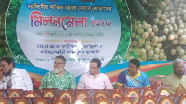 আশরাফুল ইসলাম সবুজ: নরসিংদীর লটকন রাজ্যে মিলন মেলায় অনুষ্ঠিত হয়।শুক্রবার (১৪ জুলাই) শিবপুর উপজেলা জয়নগর ইউনিয়নের আজকিতলা বাজারের সংলগ্ন এলাকায় বেতার শ্রোতা ফাউন্ডেশন, নরসিংদী গ্রুপ-বাই, বানিয়াছল বেতার বন্ধু সংসদ এর